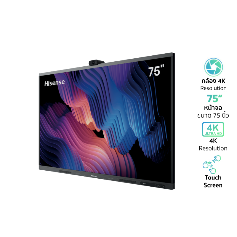 รายละเอียดสินค้าHISENSE 75MR6DE จออินเตอร์แอคทีฟขนาด 75 นิ้ว ความละเอียด 4K Ultra HD (3,840 x 2,160 พิกเซล) มาพร้อม กล้อง 4K ในตัว รองรับการประชุมออนไลน์ (Video Conference) ได้อย่างมีประสิทธิภาพ ภาพคมชัด สีสันสดใส และเสียงชัดเจน หน้าจอรองรับ ระบบสัมผัส (Interactive Touchscreen) ตอบสนองไว ใช้งานง่าย สามารถเขียน วาด และควบคุมคอนเทนต์ได้สะดวก เหมาะสำหรับห้องเรียน ห้องอบรม และห้องประชุมองค์กร จุดเด่น